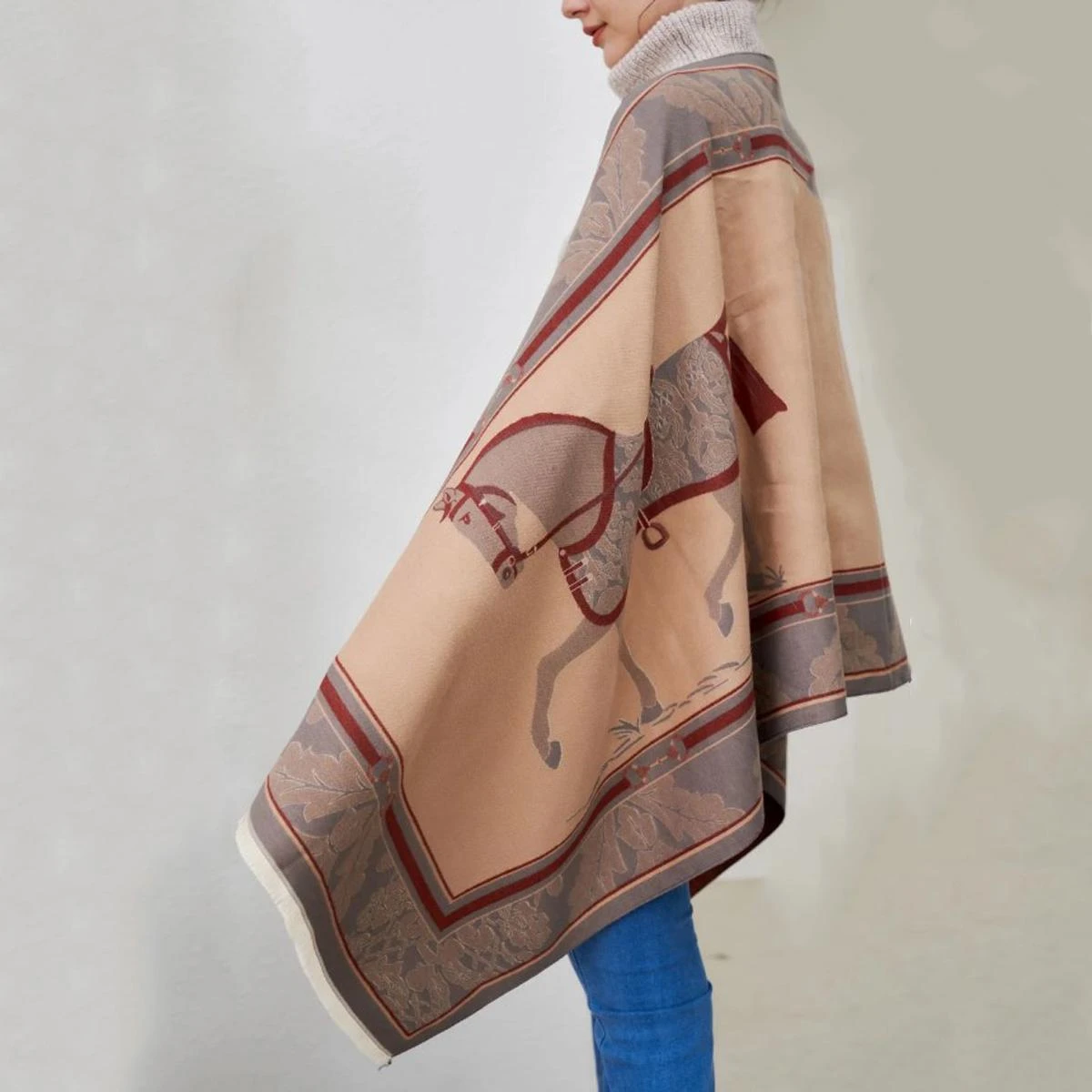 Elevate your winter wardrobe with our AWST Int’l Baroque Horses Acrylic Cashmere Scarf. This luxurious scarf features a stunning Baroque Horses design that adds a touch of elegance to any outfit. Made from soft acrylic fabric, it feels gentle against your skin while providing warmth and insulation. Measuring 70″ x 26″, it’s the perfect accessory for chilly days. Keep it looking like new by hand washing when necessary.
