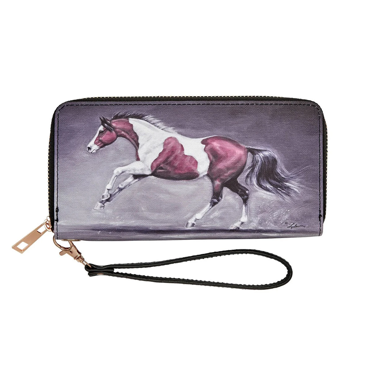 This is the perfect gift for all fashionable Equestrians! This zippered wallet with wristlet includes three inside compartments along with two bill fold slots and eight credit card slots. There is also plenty of room for a mobile phone!