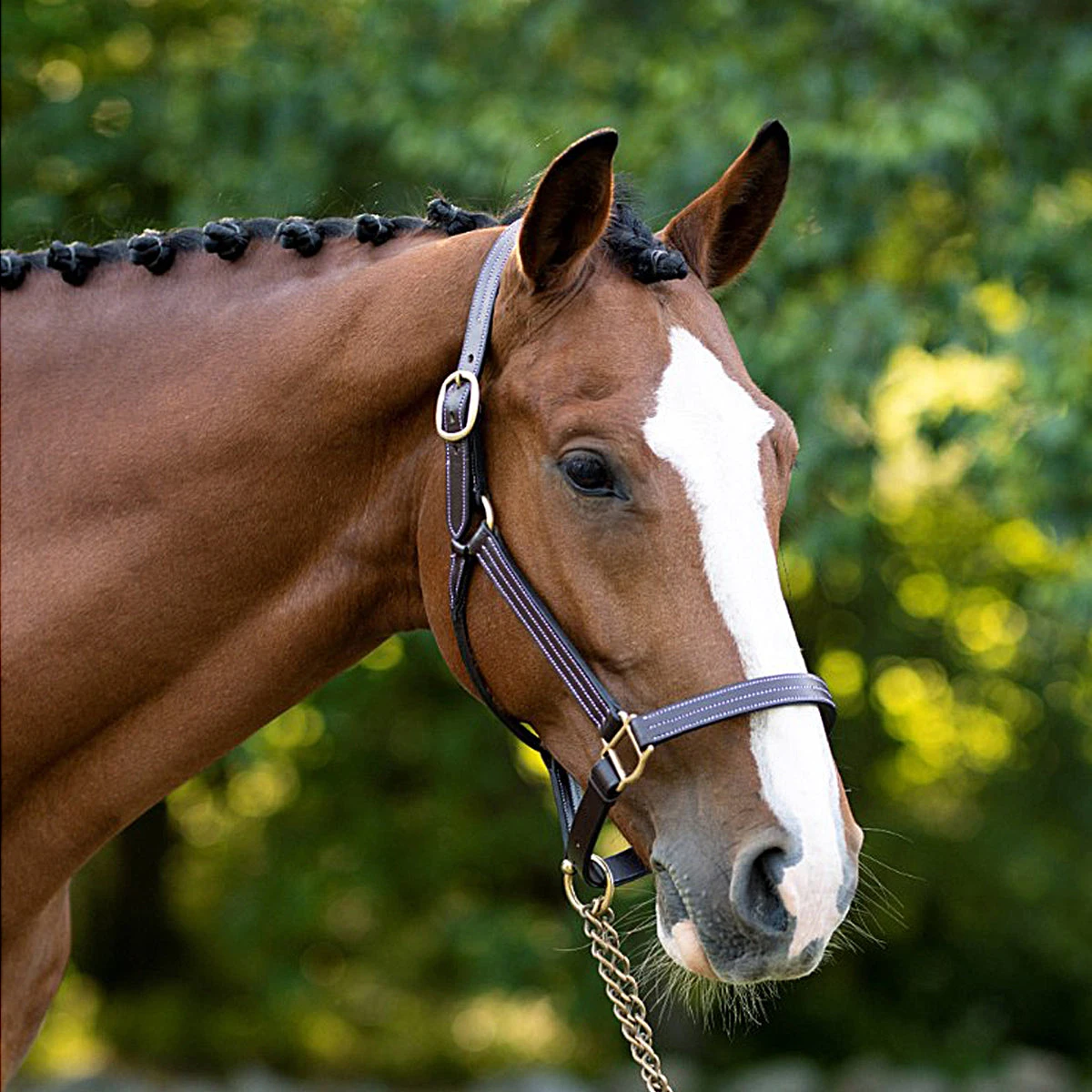 The Black Oak Pine is a brown unpadded halter with three rows of white stitching.