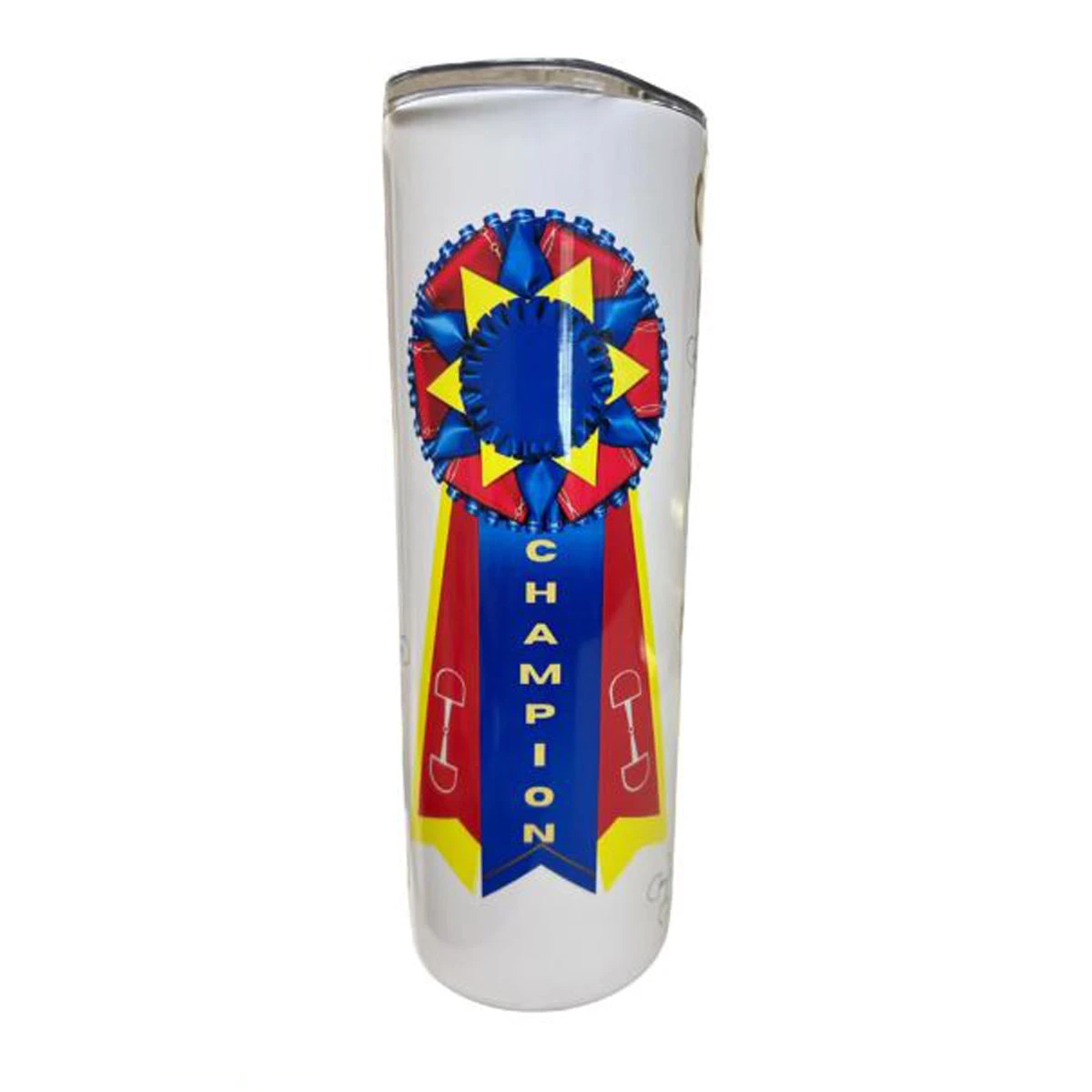 We love the high-quality materials and equestrian flair of this tumbler! Perfect for both hot and cold beverages. This is a 20oz double walled stainless steel tumbler ideal for any horse lover.