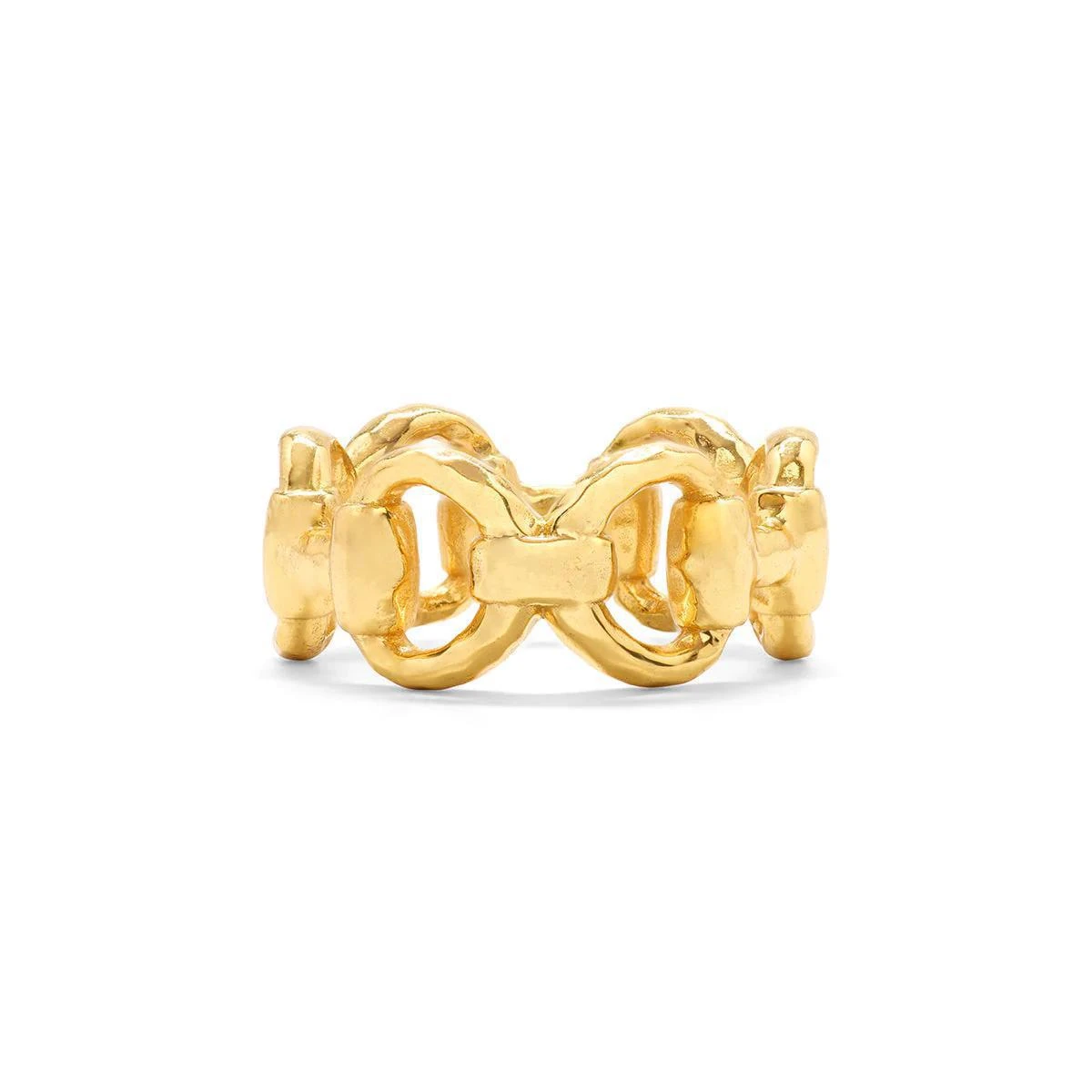 We love the hammered gold texture of this equestrian inspired ring from Capucine De Wulf. Simple understated elegance in the form of a delicate joined D snaffle bit. Perfect to accesorize any outfit!Â