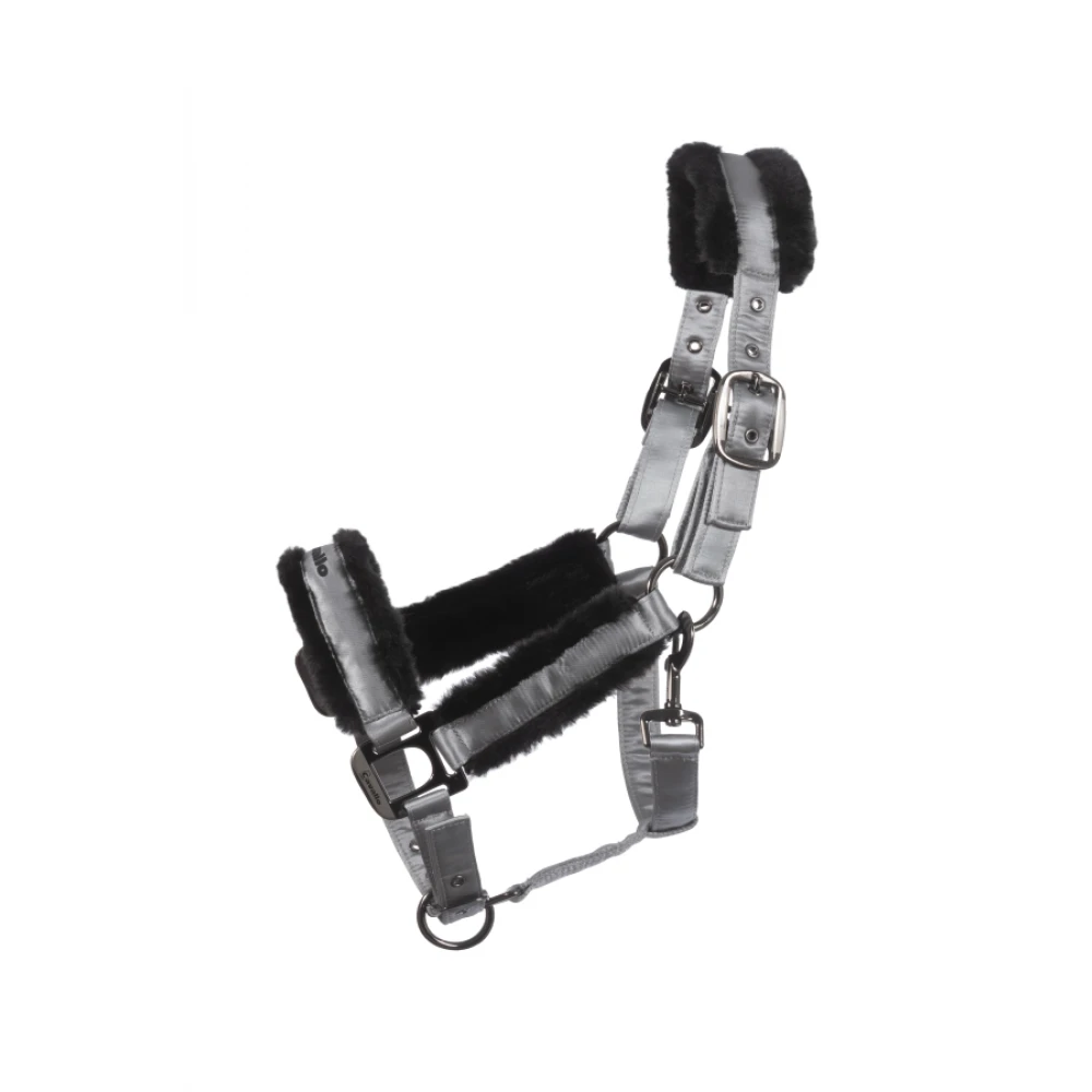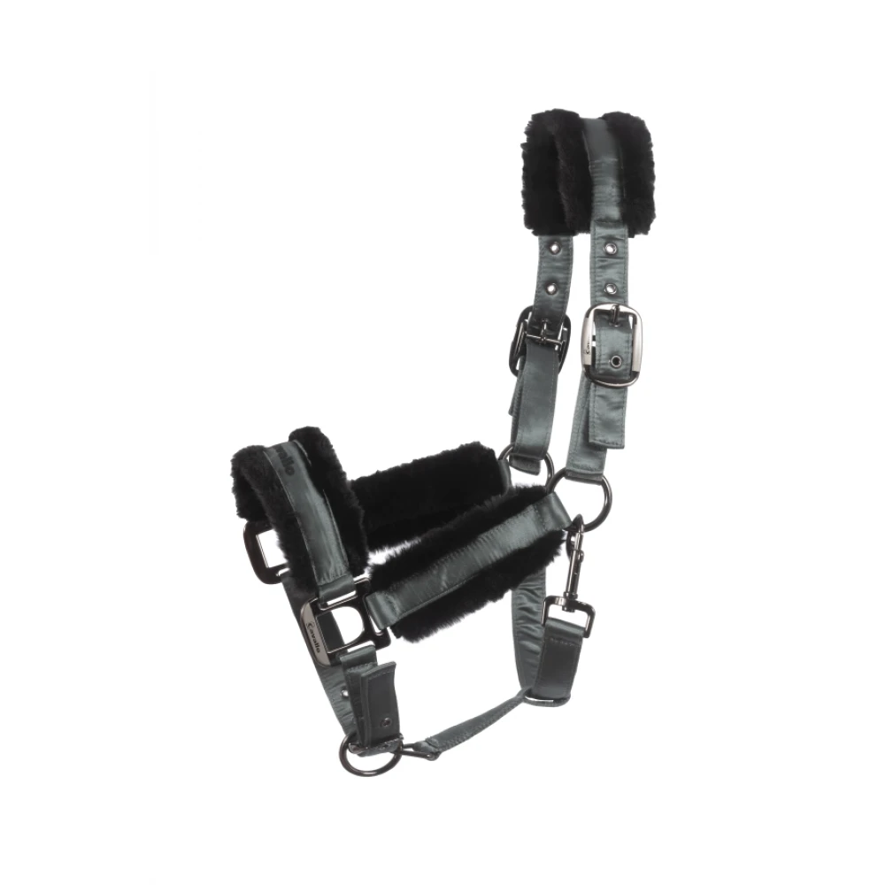 We love that the cavallo Jero is an elegant halter made of elegant shimmering satin with an integrated velcro fastener on the headpiece. Comfortable faux fur padding on the nose and headpiece. Size adjustable at the poll and nose with buckles. Cavallo logo lettering on noseband. 100% polypropylen, 100% polyester