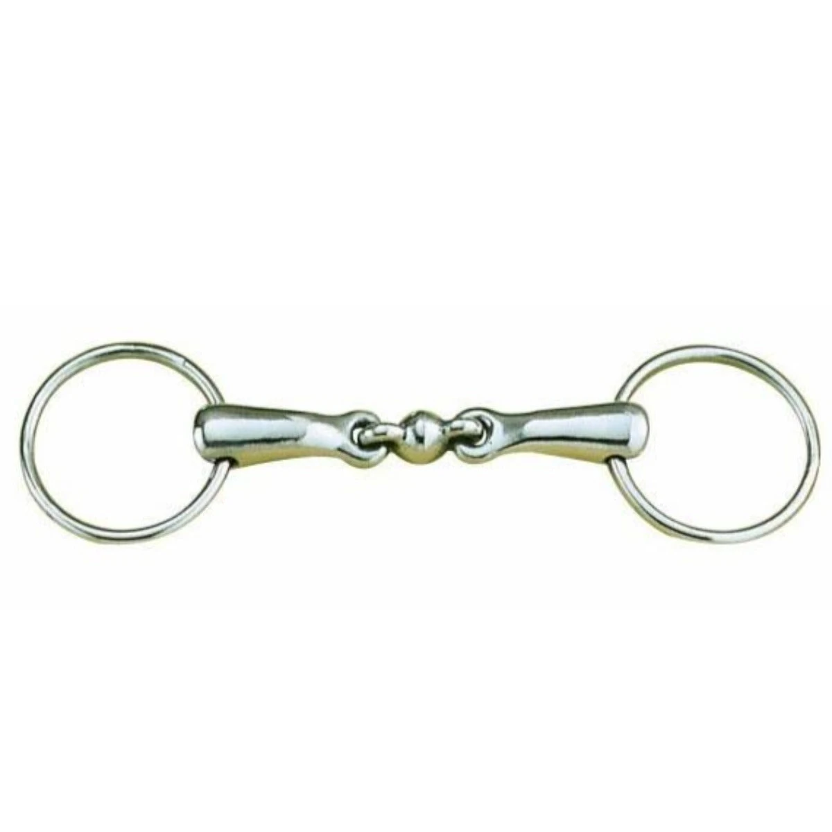 We love this Centaur® Jointed Berry Loose Ring Bit because it is a gentle effective bit and the jointed berry helps your horse accept the bit. Great as a training bit.