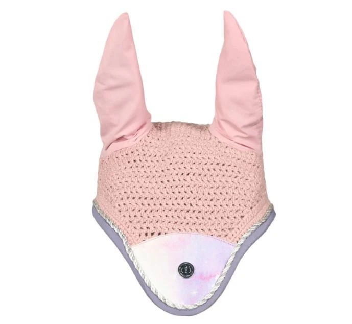 This ethereal, sunrise-inspired, star kissed design is just stunning to behold! You won’t find it anywhere else because all Dapplebay designs are 100% unique and created in house by founder & designer, Leah. This fly veil features a shorter length (less flipping!) and our signature motto “Good Rides Only” facing the rider. This bonnet will fit most ponies 12.2-14h. The ears measure 5.5″ long.