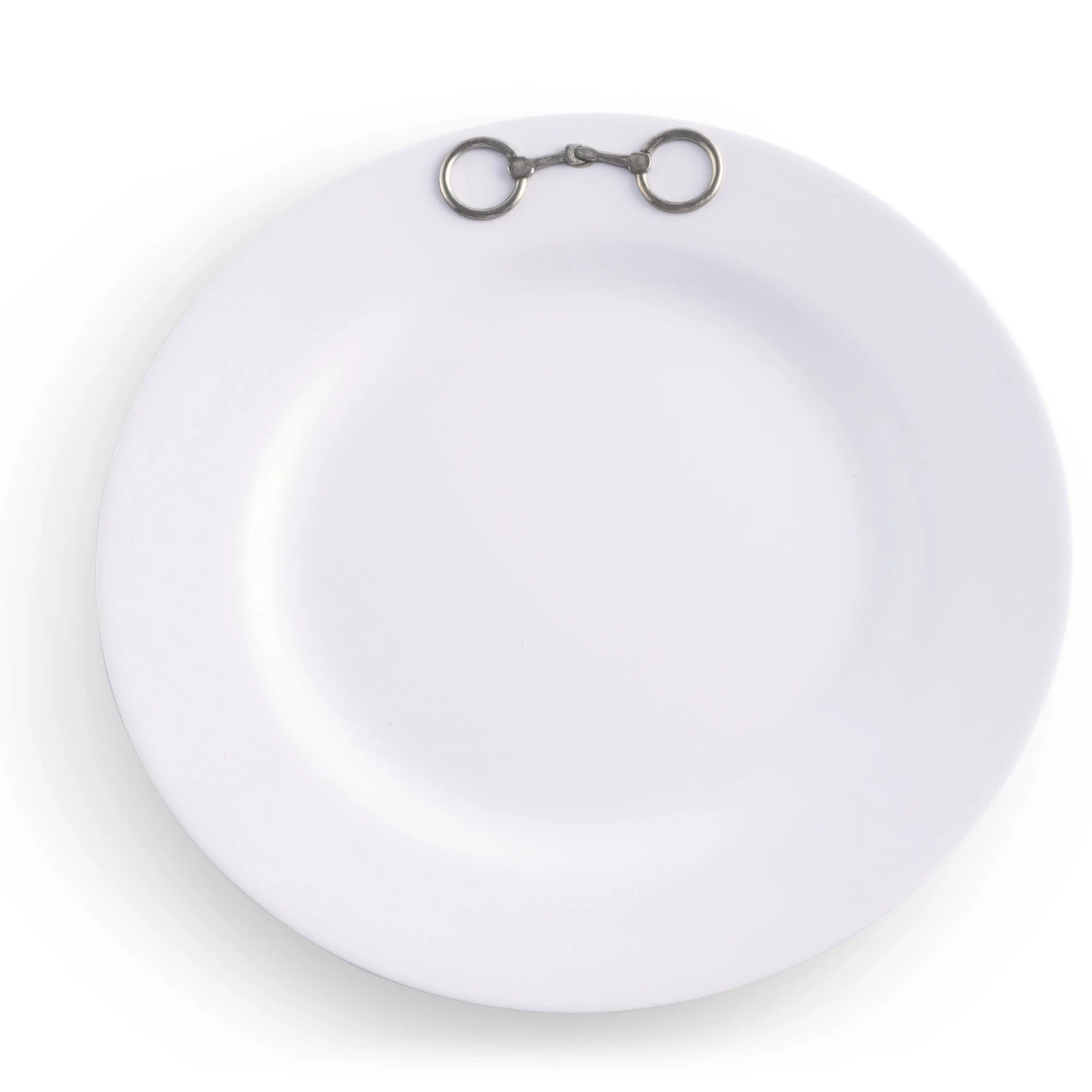 It is said that the best color for presenting food is white – and Arthur Court agree! White dishes make food look more elegant and appetizing. Our pure white Melamine resin is durable, fire and heat resistant and virtually unbreakable the perfect plate for outdoor dining. In true Arthur Court style, a detailed pewter metal Equestrian Bit is attached to rim to create classic dinnerware that will stand up to outdoor use but formal enough for indoor dining.