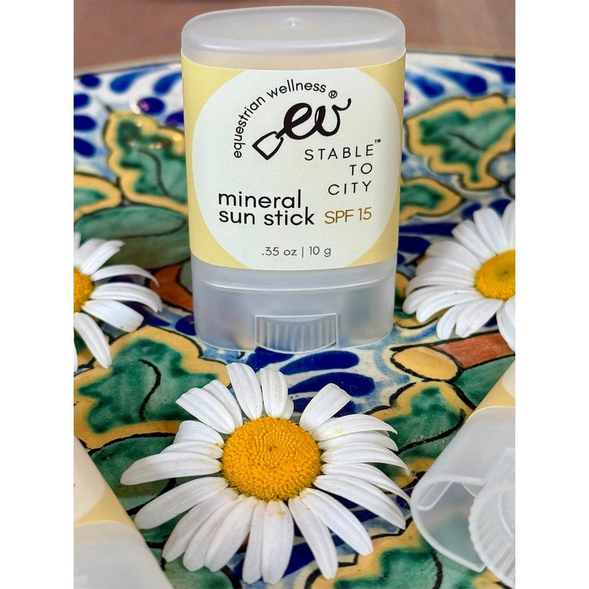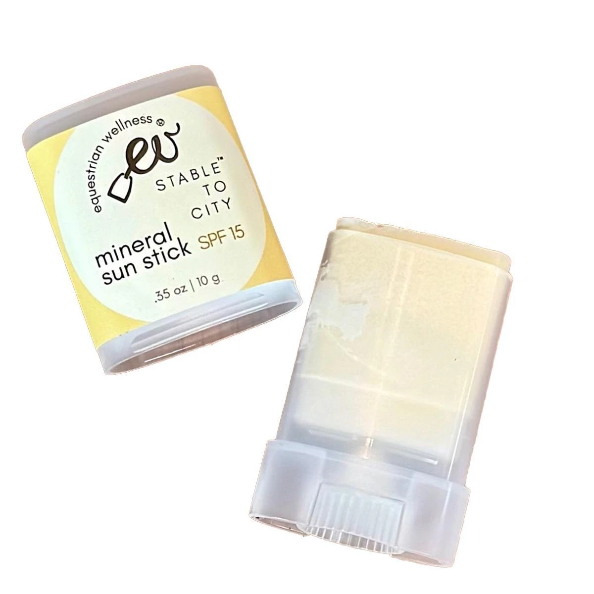 Introducing the Stable to City mineral sun stick with SPF 15! Featuring just four (4) organic ingredients, this sunscreen is broad spectrum, and safe for everyone to use! The .35 oz roll on containers are fragrance & chemical free as well as biodegradable and reef safe. safe for use on children under six months of age.