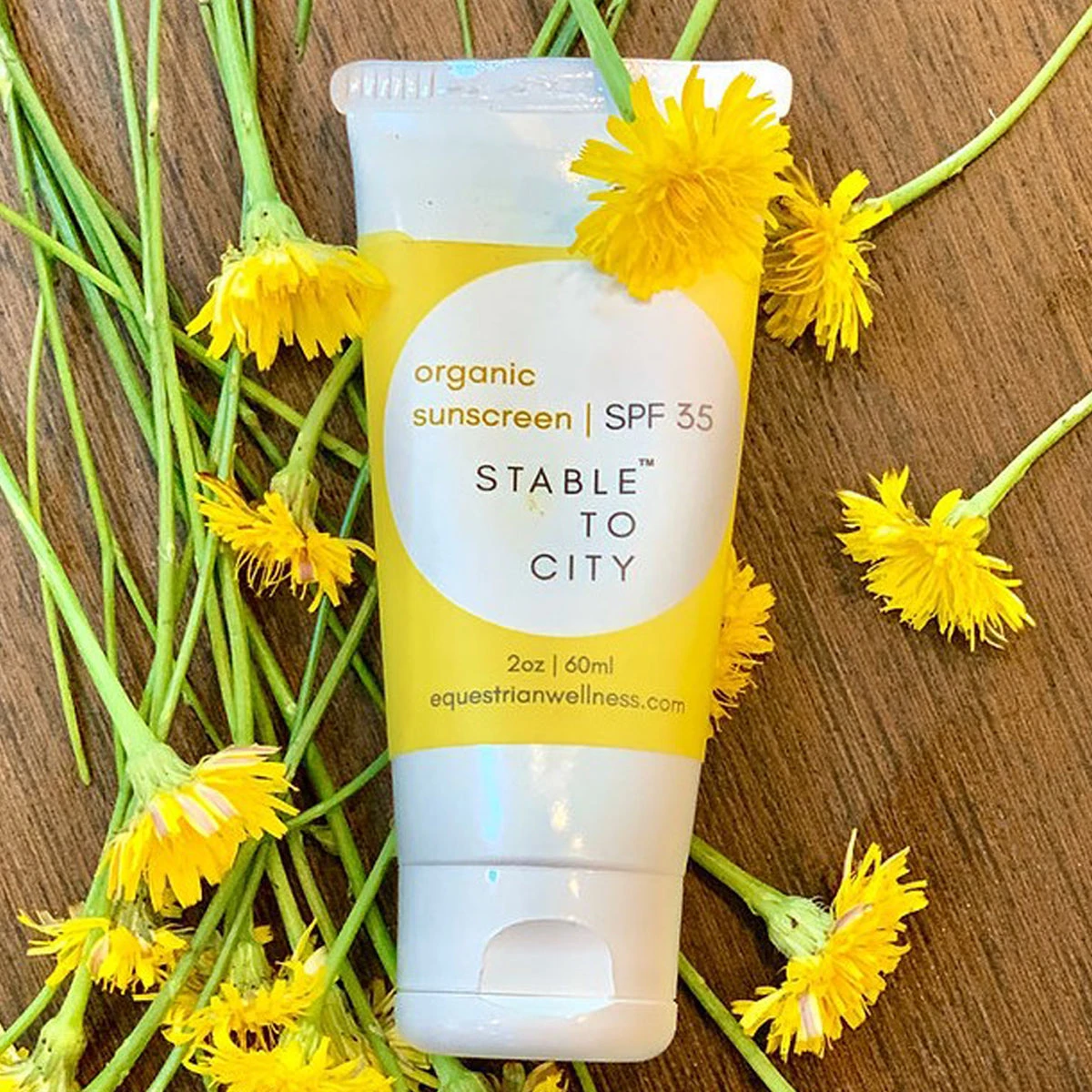 Introducing the Stable to City Organic Sunscreen | SPF 35! Featuring just six organic ingredients, this sunscreen is broad spectrum, & safe for everyone to use! The 2oz tubes are fragrance & chemical free as well as biodegradable & reef safe!