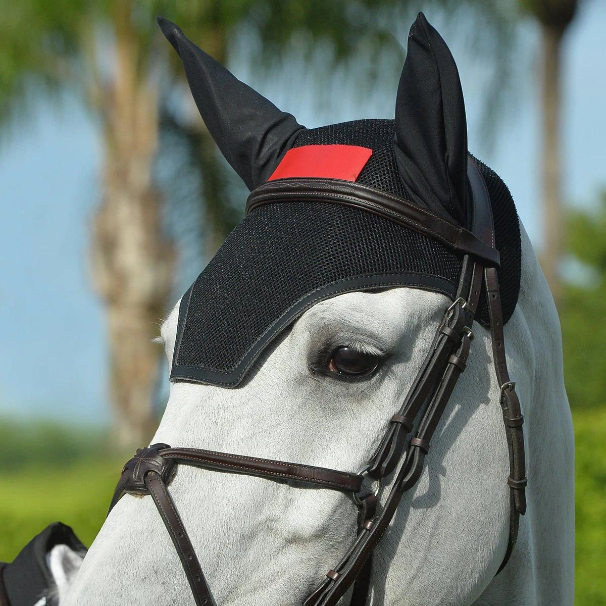 We love this EquiFit ear bonnet for horses that are sensitive in crowded rings. All the popular features of their classic Ear Bonnet with a removable red patch on the forehead to alert others that your horse needs extra room when passing.Â