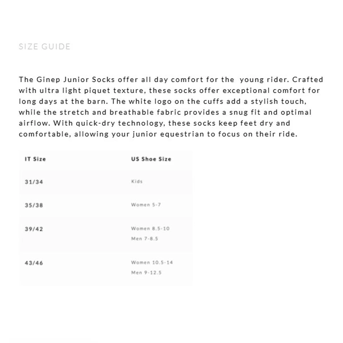 The Ginep Junior Socks offer all day comfort for the young rider. Crafted with ultra light piquet texture, these socks offer exceptional comfort for long days at the barn.
