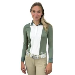 We love these show shirts because they artfully combine the classic good looks of a crisp white shirt in the show ring with a colorful appeal. Paired with a show coat, the white front panel, collar, and cuffs make a crisp, clean presentation in the ring.