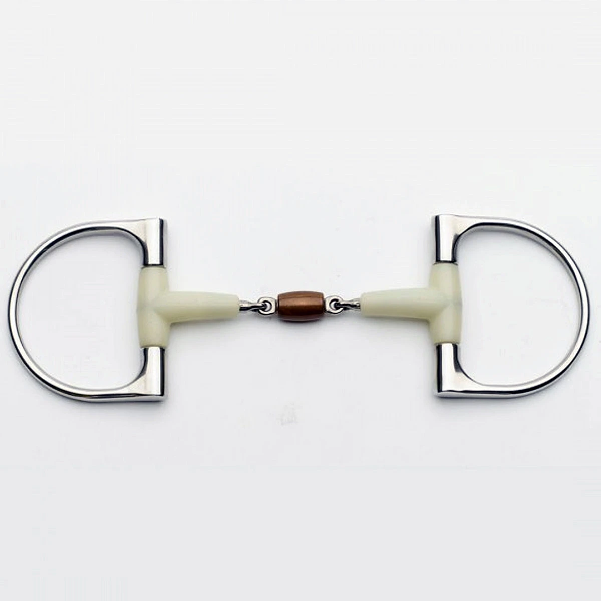 Excellent bit acceptance can be achieved by this combination of Apple scented space age polymer mouthpiece and pure copper center roller. Pure copper is a soft, warm metal. By using 99.9% pure copper in the center of the mouthpiece, bit acceptance is improved. The taste of copper encourages horses to salivate and keep a moist mouth. The curved-shaped mouthpiece better fits the contours of the horse’s mouth.