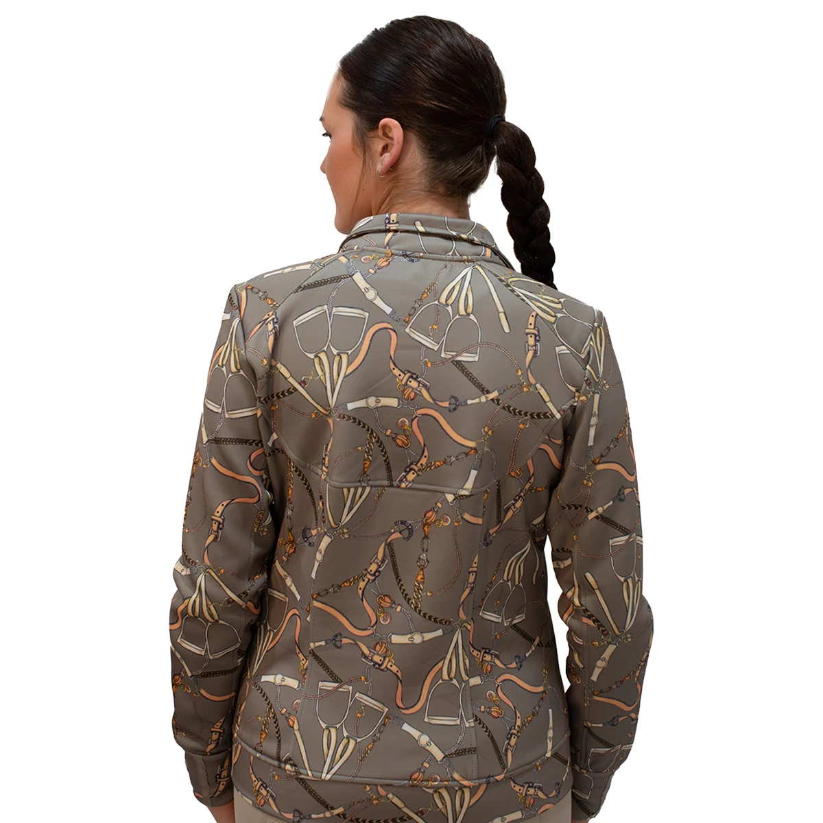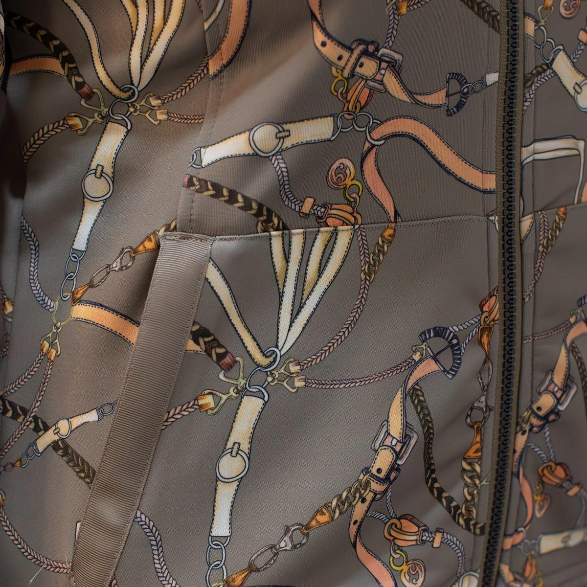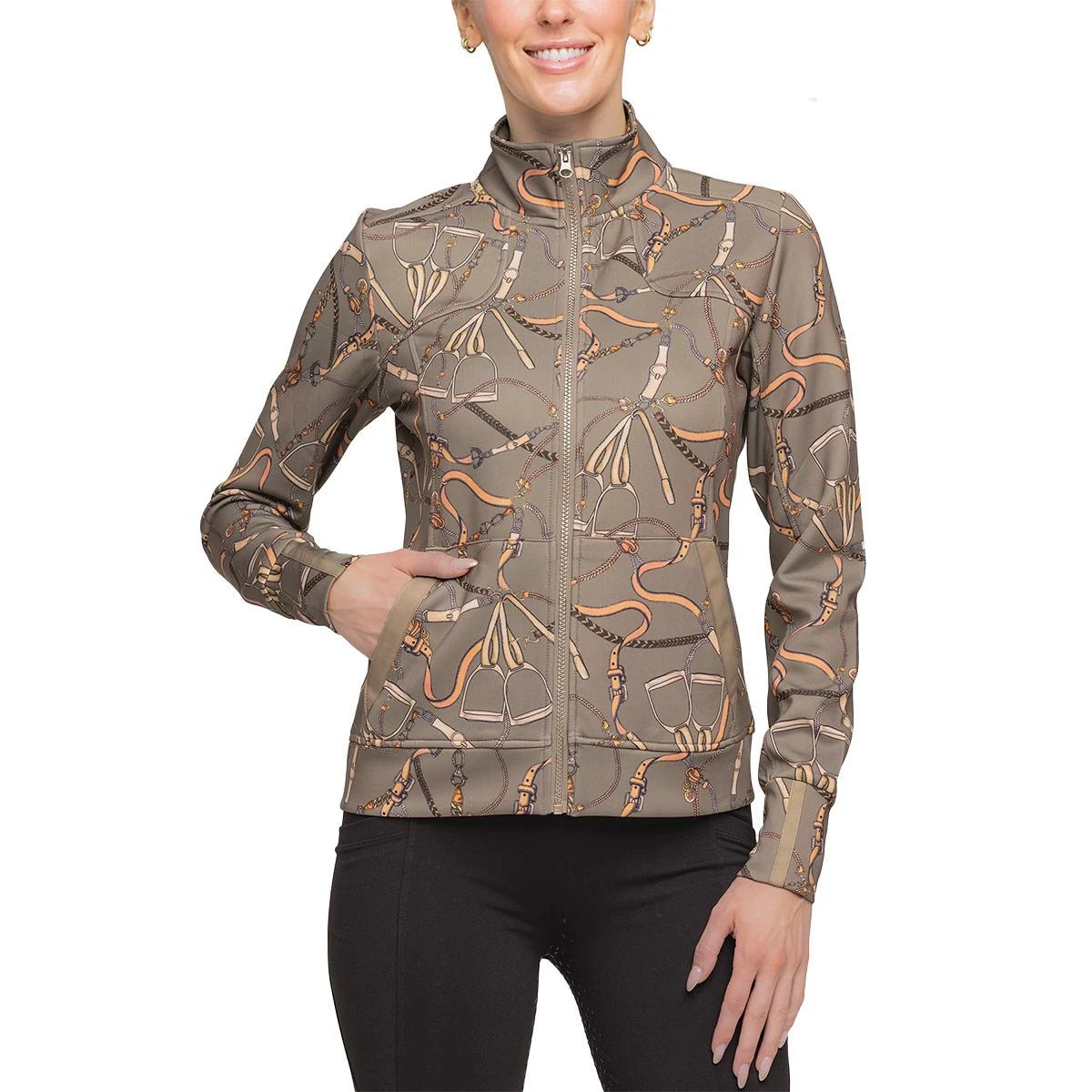 This season’s beautifully constructed European belt and stirrup print scuba jacket is sleek and versatile. Made of soft rayon blend yarn, it features sturdy zipper, flattering seams, two front zipper pockets with subtle grosgrain ribbon trim accents.
