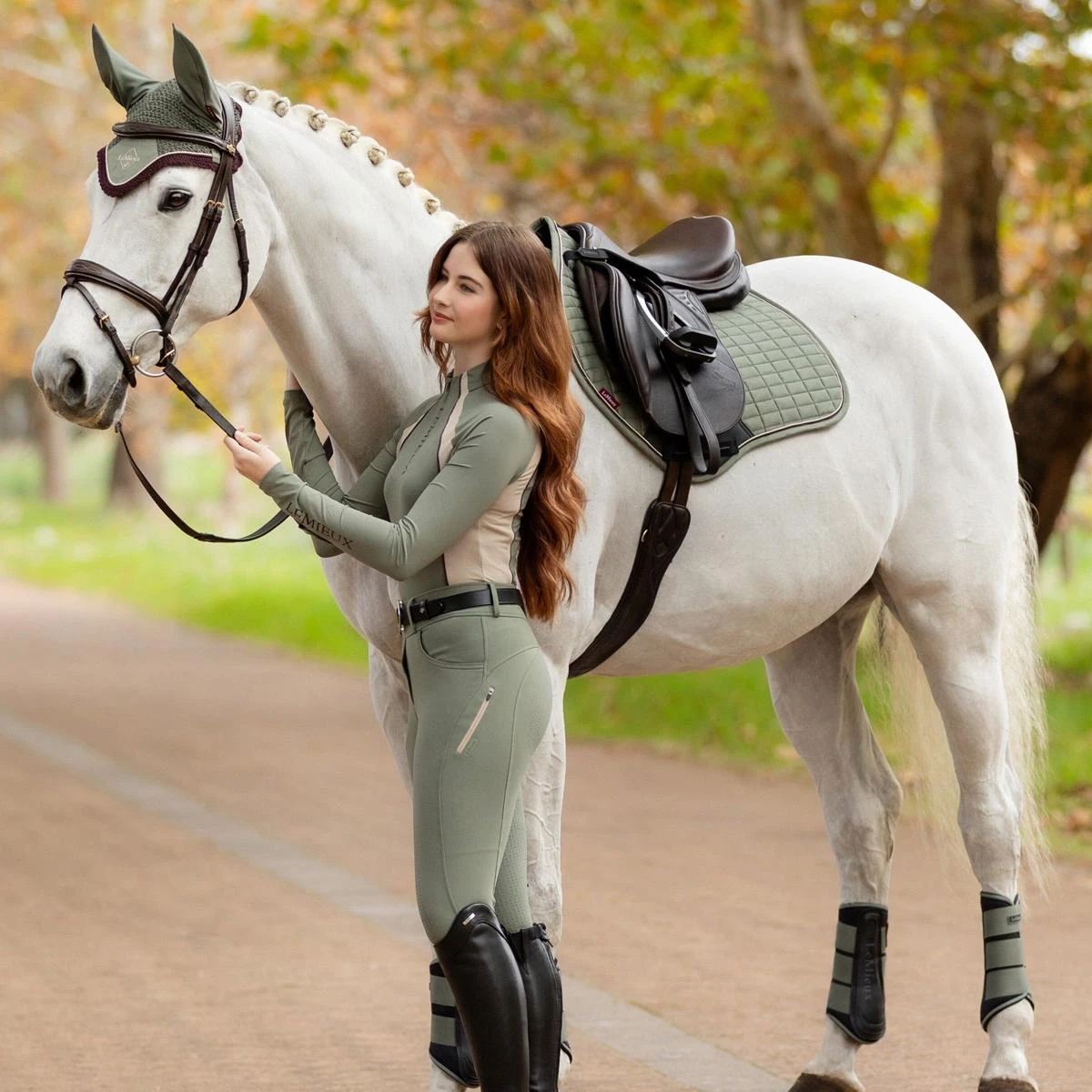 We love this high-quality square with soft suede binding and New PU Leather Girth Protection area, the classic Close-Contact cut from LeMieux is designed to fit a wide range of more forward cut jumping saddles.