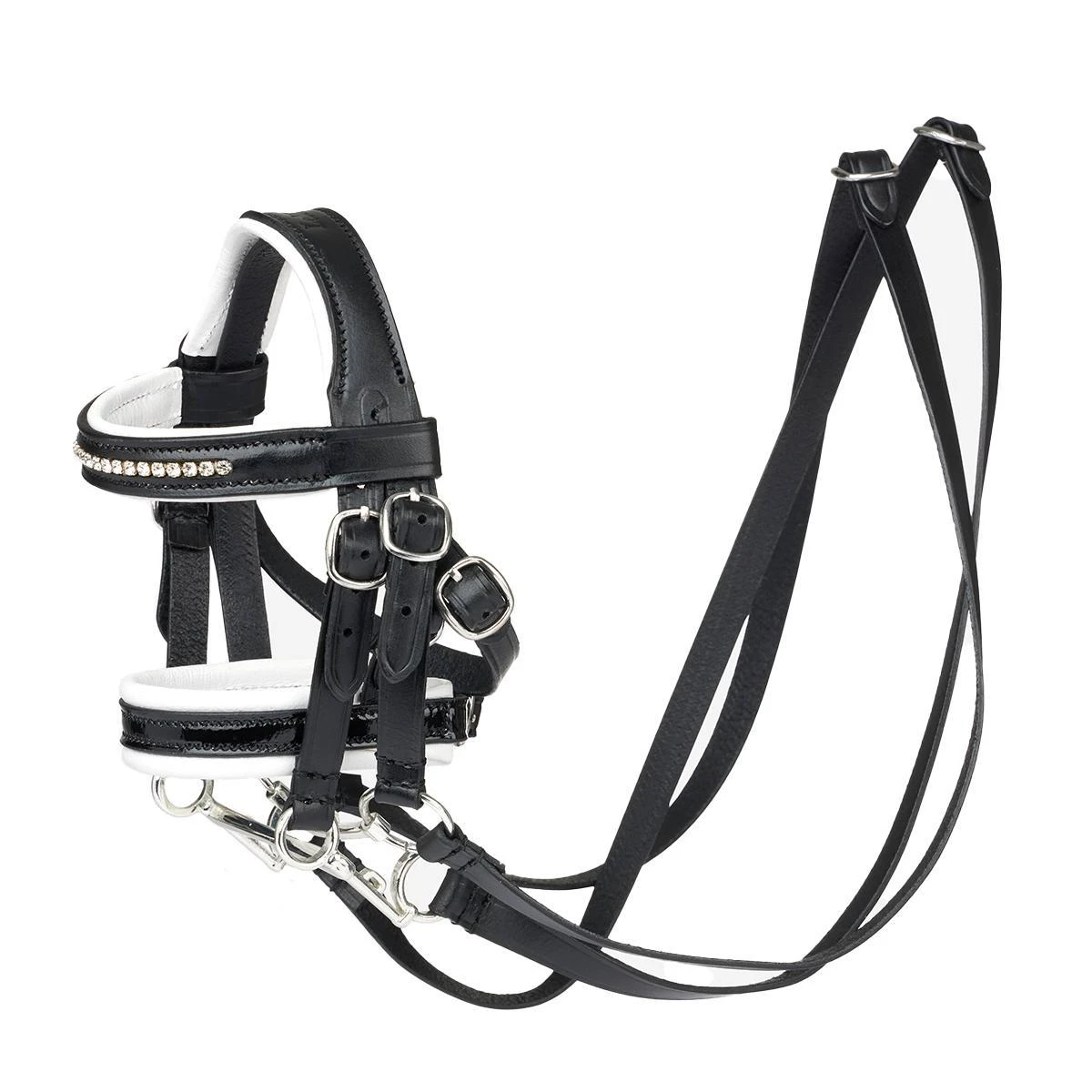 A real leather dressage bridle made by the same leather workers who craft our elite performance bridles, this authentic miniature has functional buckles so you can find the perfect fit for your very own LeMieux Toy Pony. Just like a real dressage bridle, it has a snazzy crystal browband and a shiny black patent noseband with soft white leather padding. All the accurate details are in place, even down to the double bit, with a Weymouth, a Bradoon and double reins.