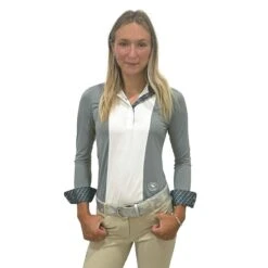 Essex Classics Ladies “Spurs And Straps” Luna Grey Performance Long Sleeve Show Shirt