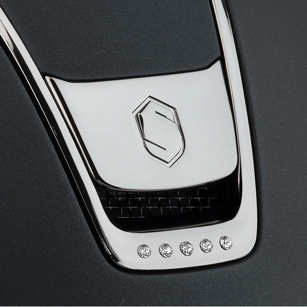 The new edging allows 300 Swarovski crystals to be added to the helmet’s contours, even in areas of airflow.