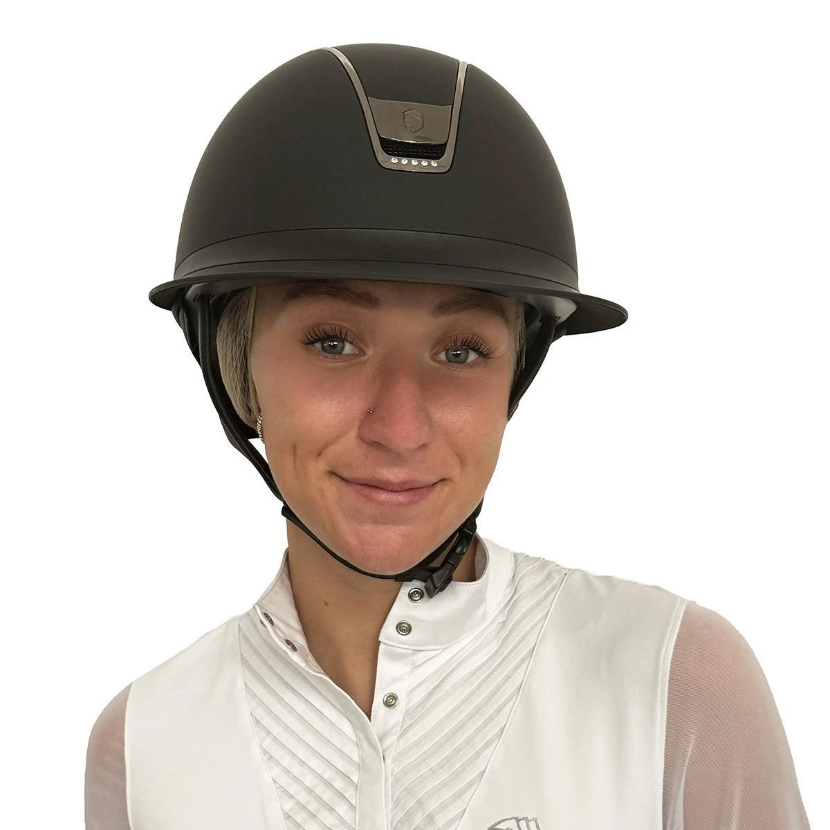 Samshield is synonymous with style and quality, and the new upgraded version of the 2.0 helmets are no exception! The Samshield 2.0 Miss Shield Shadowmatt 5 crystal helmet is the perfect way to show your sparking personality for all the right reasons. Subtle enough for the hunter ring, fun enough for the jumper ring, these swarovski crystals embedded into the helmet trim are the perfect accent to your show look!