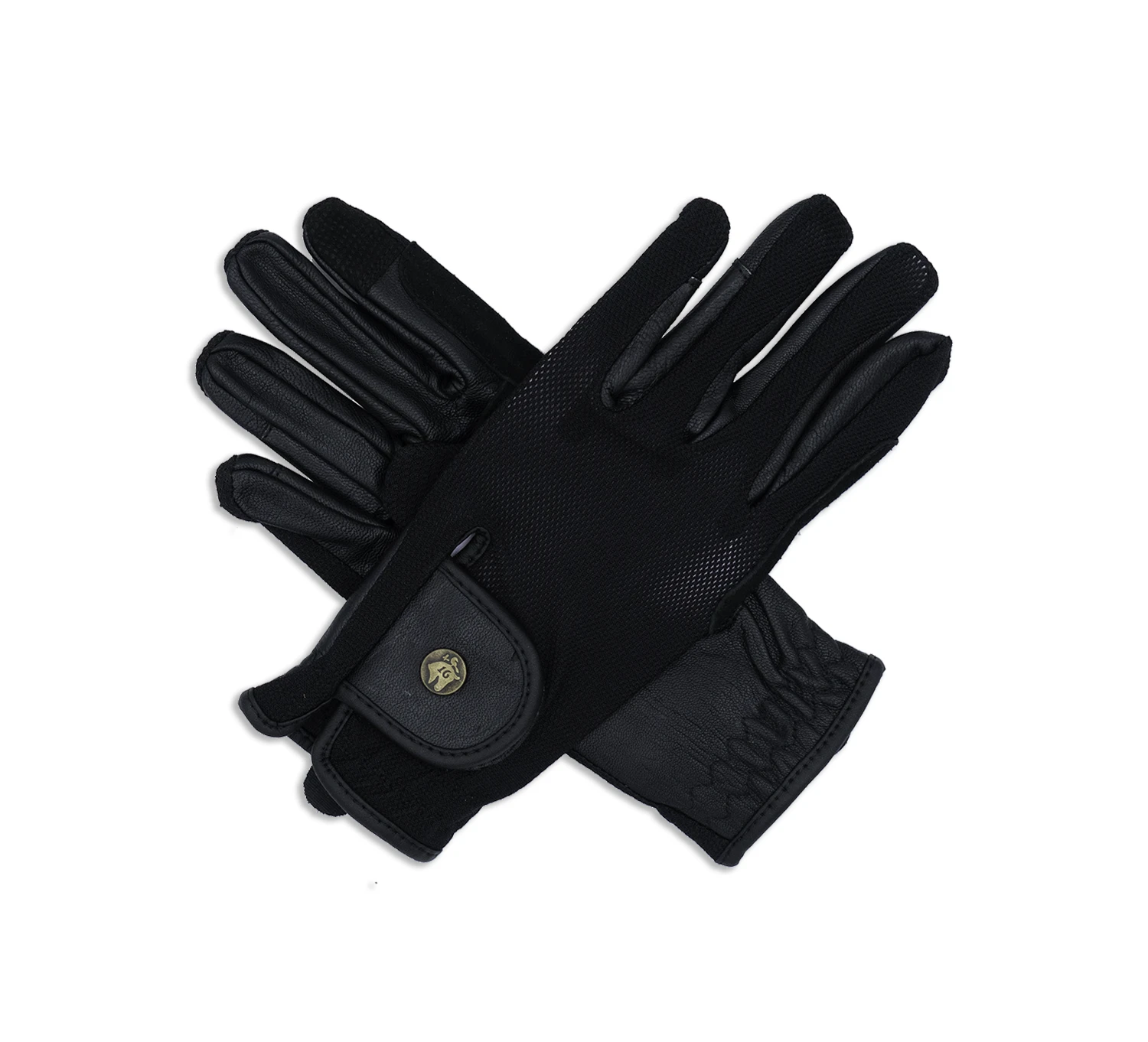All black fine mesh & leather riding gloves.Â