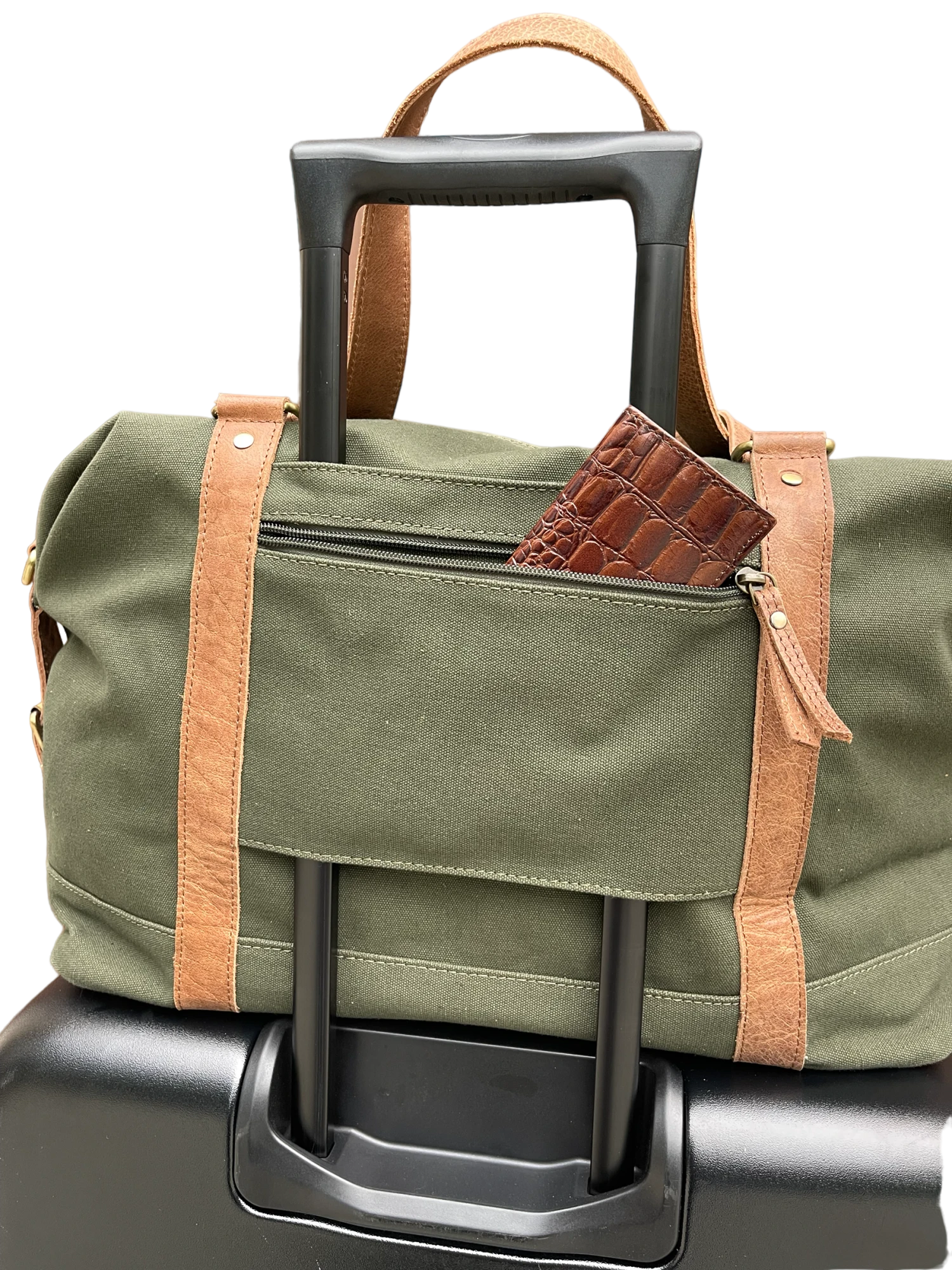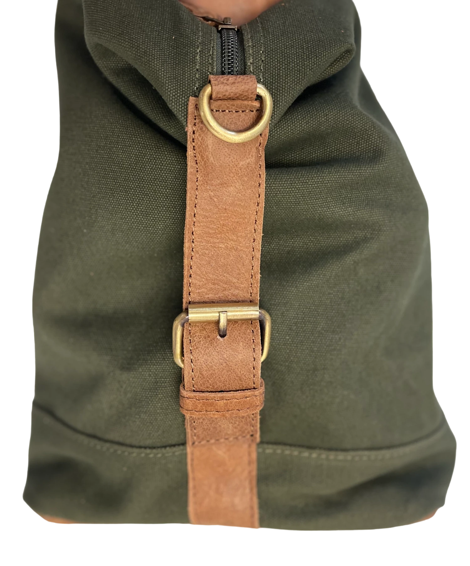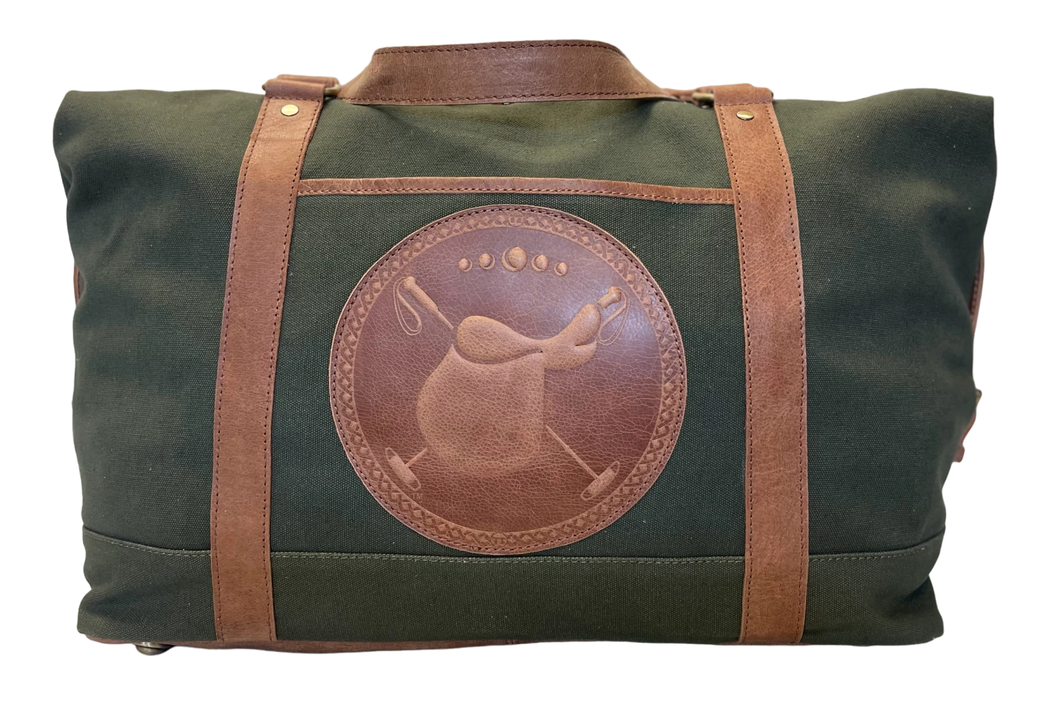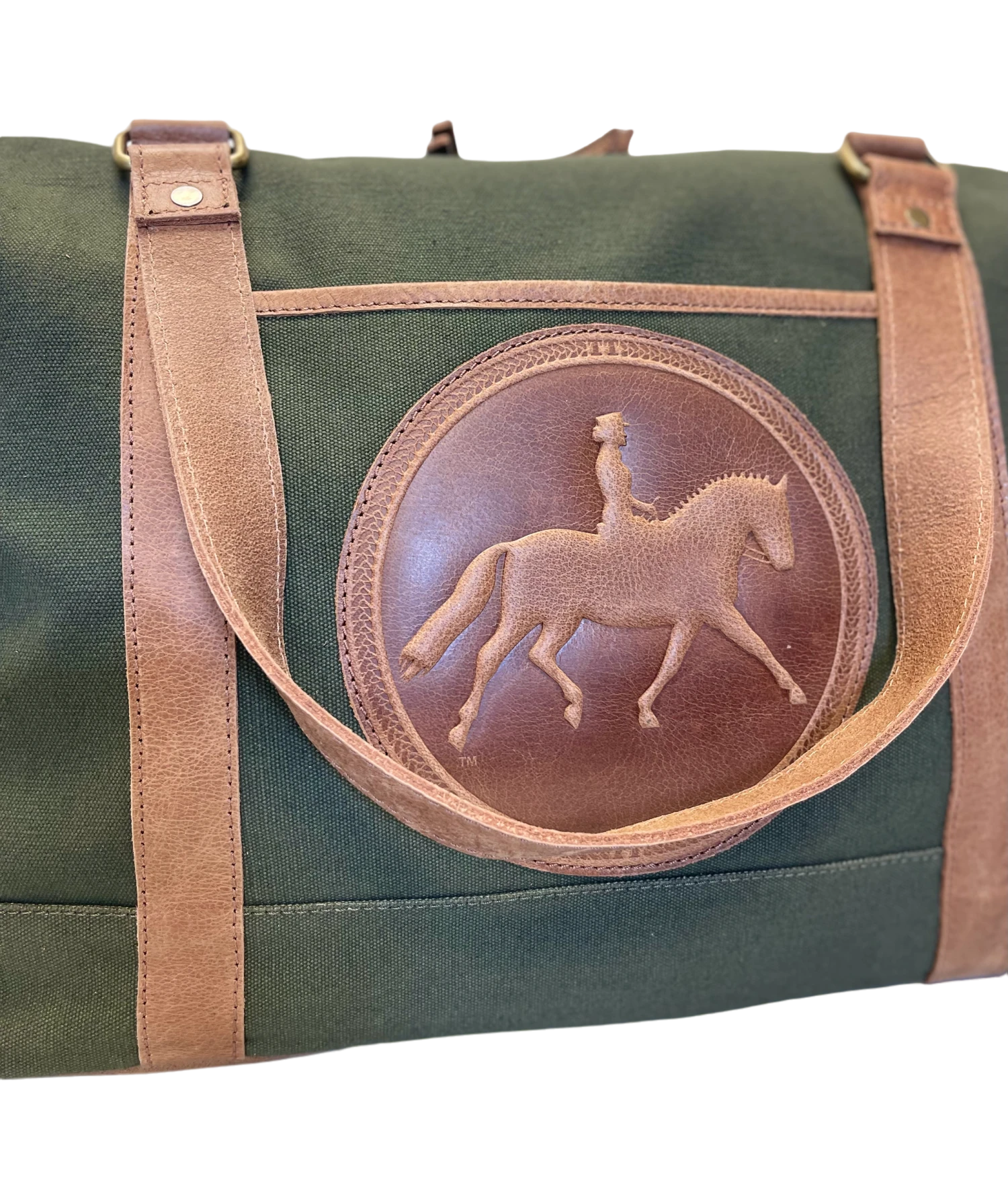 Introducing the Tucker Tweed Equestrian Barn Duffle, made with garment-dyed heavy duty canvas, featuring two-tone, eco-friendly remnant leather accents. Responsibly and resourcefully made by hand, this is the perfect duffle to complement the barn bag. Generous in size, this overnight option is ideal for show season or a weekend away. Durable and practical with reinforced stitching, this duffle features an interior zip pocket, adjustable and removable shoulder strap and an exterior pocket located on our “trolley” sleeve to attach easily to rolling luggage.