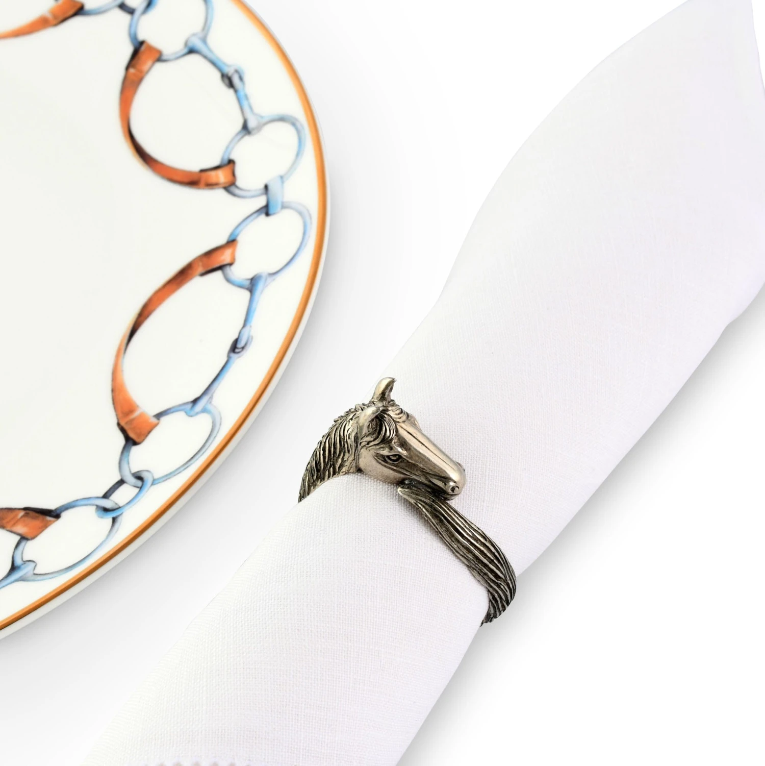 Elevate simple meals by pairing your everyday napkins with this noble creature, who complements your finest linens with his exacting craftsmanship. Our horse-lover’s napkin ring is formed from the highest-quality pure pewter and makes a cherished gift.