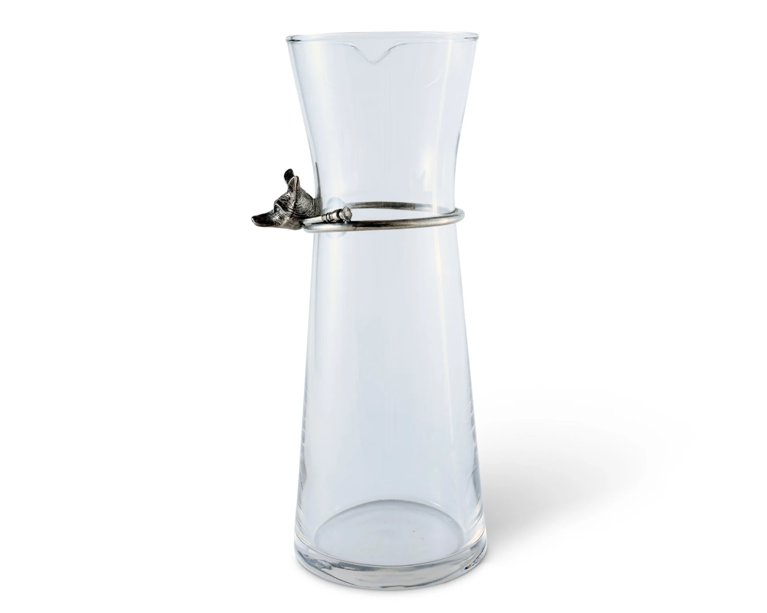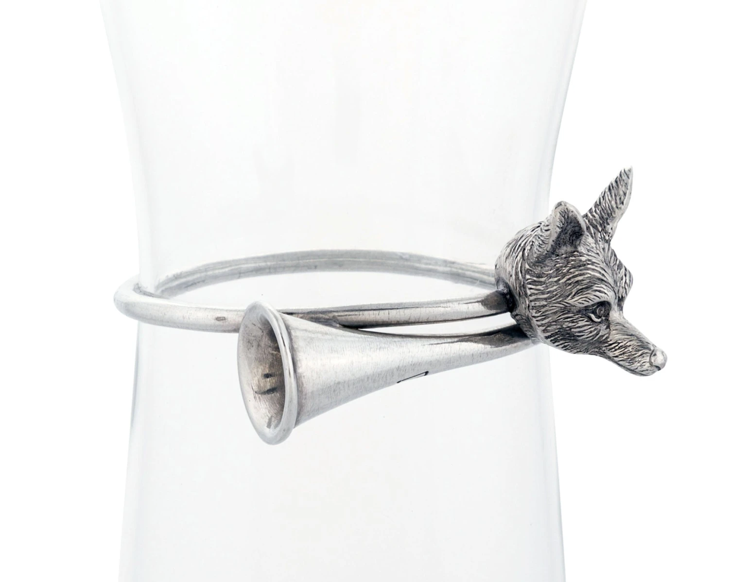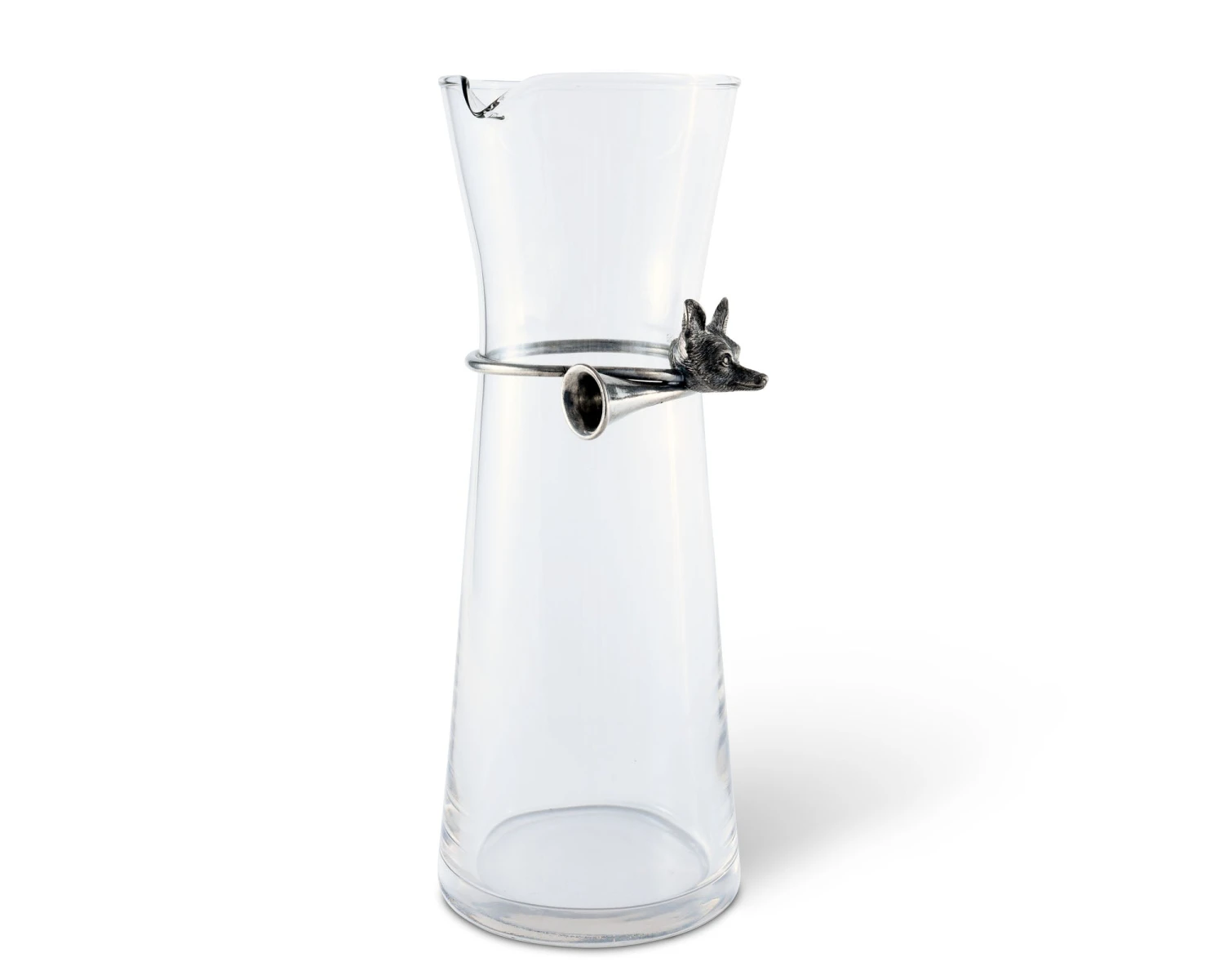 A popular beverage server for animal enthusiasts, this wine carafe has a collar crafted from pure pewter featuring the face of a fox and accented with nature-inspired branch flourishes. This woodland-themed carafe holds up to 28 ounces of liquid, or the contents of a standard bottle of wine. Enjoy serving other beverages from this elegant pitcher too. Chilled water and colorful juices poured from this Hunt Horn wine carafe make a delightful addition to your table setting or buffet spread.